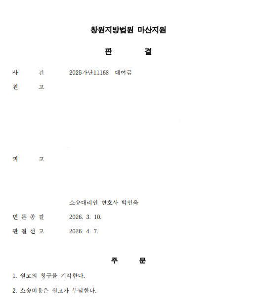 1. 사안(창원지방법원 마산지원 2025가단11168 대여금)
