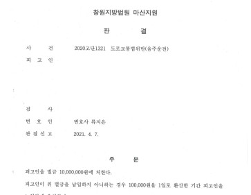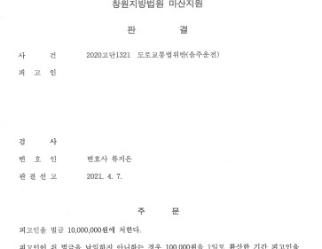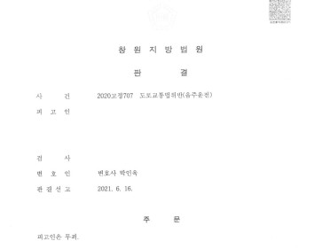 1. 사안 창원지방법원 마산지원 2020고단1321 도로교통법위반(음주운전) 피고인은 음주운전으로 처벌받은 전력이 있음에도 또 다시 혈중 알콜농도 0.16…