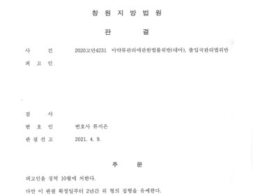 1. 사안 창원지방법원 2020고단4231 마약류관리에관한법률위반(대마), 출입국관리법위반 피고인은 우즈베키스탄 국적을 가진 외국인으로 총 2회에 걸쳐 대…