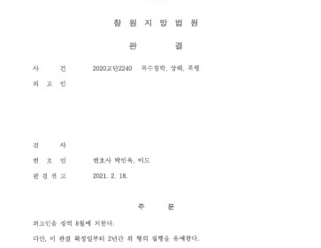 1. 사안 창원지방법원 2020고단2240 특수협박, 상해, 폭행 피고인은 음주운전으로 징역 1년에 집행유예 3년을 선고받고 현재 집행유예기간중인…