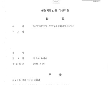 1. 사안 창원지방법원 마산지원 2020고단1370 도로교통법위반(음주운전) 피고인은 음주운전으로 2회이상 처벌받은 전력이 있음에도 또 다시 혈중 알콜농도…