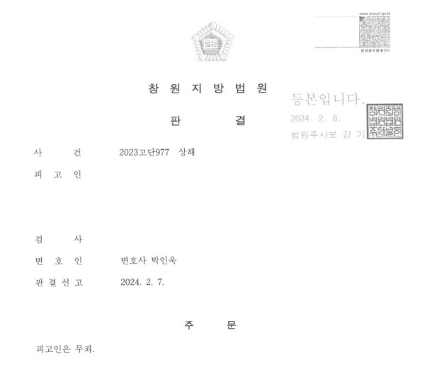 창원지방법원 2023고단977 상해