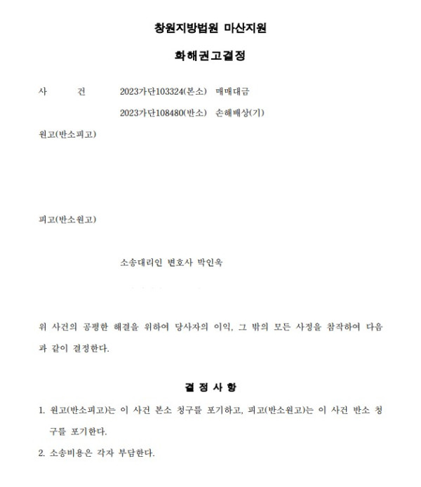 창원지방법원 마산지원 2023가단103324 매매대금