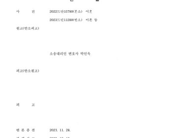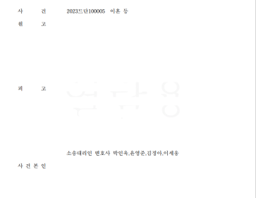 1. 사안 (창원지방법원 2022드합11167(본소),2022드합11174(반소) 이혼 등 청구)-원고대리 원고와 피고는 이사 중 인테리어 비용 등으로 돈이 필…
