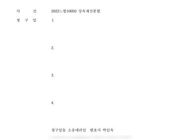 1. 사안 (창원지방법원 제2가사부 2022느합10050 상속재산분할 청구 사건) 이 사건은 청구인 4명과 상대방 1명 간의 소송이었습니다. 상속인 A…