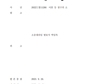 1. 사안 (창원지방법원 2022느단100198 재산분할 사건) - 청구인대리 청구인과 상대방은 혼인신고를 마친 법률상 부부로 그 사이에 성년…