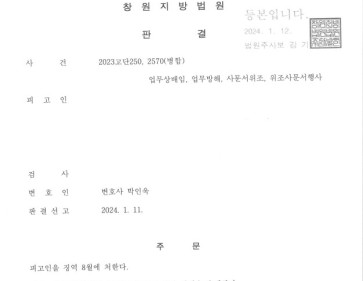 1. 사안 창원지방법원 2023고단250,2570(병합) 업무상배임, 업무방해, 사문서위조, 위조사문서행사 피고인은 자신이 다니던 회사(피해자회사)에…