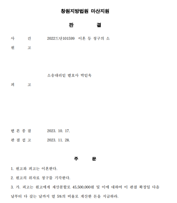 1. 사안 (창원지방법원 2022드단101599 위자료, 재산분할 청구 사건)