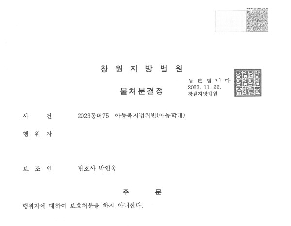 창원지방법원 2023동버75 아동복지법위반(아동학대)