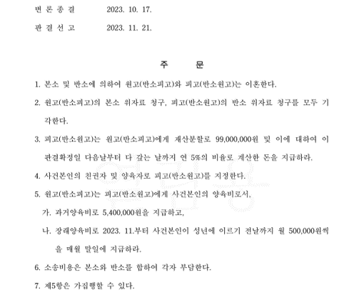 피고를 상대로 이혼, 위자료 3,000만원, 재산분할 1억 5,300여만원, 친권 및 양육권자로 원고를 지정하고 양육비지급을 구하는 본소를 제기
