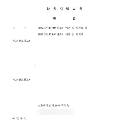 창원지방법원 2022드단11719(본소)2022드단13548(반소) 피고 대리 일부승소