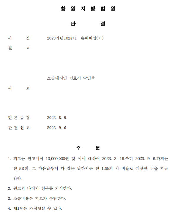 1. 사안 (창원지방법원 2023가단102871 손해배상 사건)