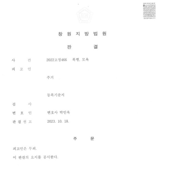 법원의 결론은 달랐습니다. 재판의 전과정을 공정하고 객관적이게 진행하여 주셨고, 반드시 들어야 하는 증인의 소환 등에 있어서도 필요한 절차를 모두 취해주셨습니다.