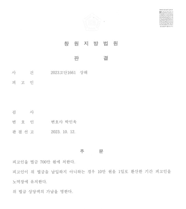창원지방법원 2023고단1661 상해