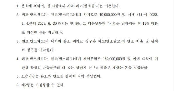 피고는 원고의 위 본소에 대한 방어를 하는 한편 위자료로 원고의 본소 위자료청구에 대응하여 5000만원의 지급을 구하는 이혼소송을 각 제기하였습니다.