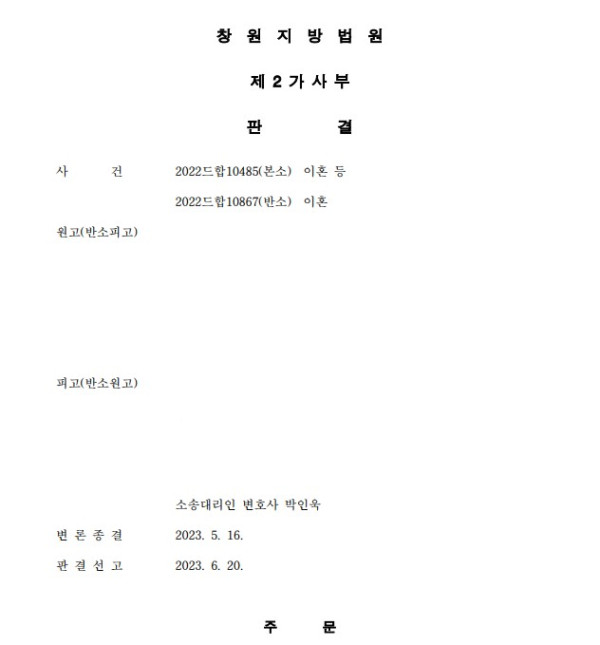 창원지방법원 2022드합10485(본소)2022드합10867(반소)