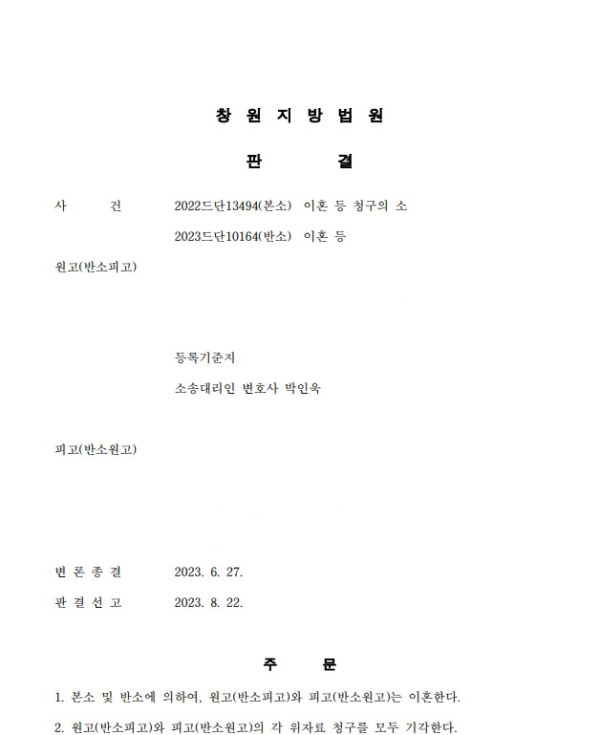 창원지방법원 2022드단13494본소, 2023드단10164반소