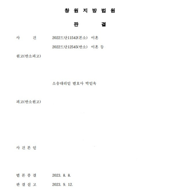 창원지방법원 2022드단11542 본소(2022드단12545 반소)