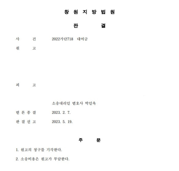 원고의 청구는 이유 없다. 원고의 청구를 기각한다.