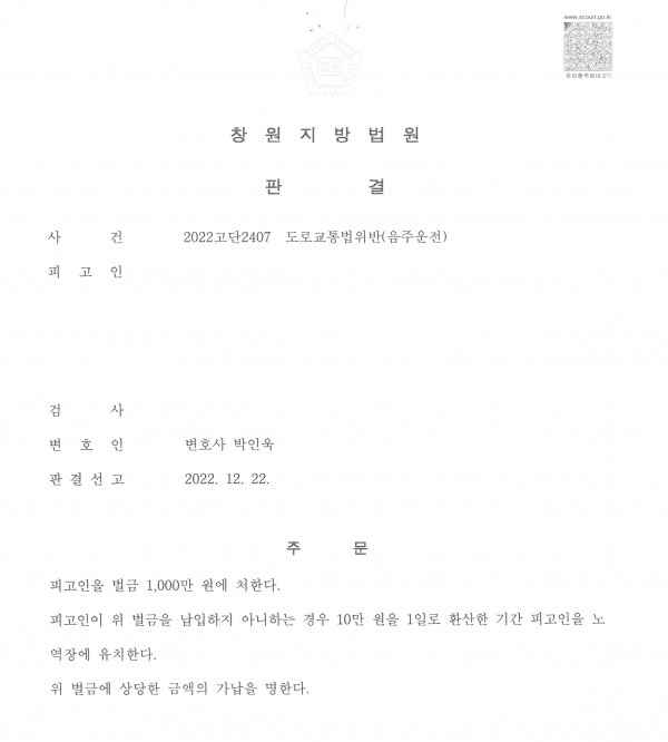 페이지 정보 최고관리자 작성일23-02-17 목록 답변 본문 1. 사안창원지방법원 2022고단2407도로교통법위반(음주운전)피고인은 이미 동종전과가 있는 상태에서0.157%의 혈중알코올농도의 술에 취한 상태로 운전하였다는 내용으로 기소되었습니다.피고인은 회사에 재직중인 상태이고, 부양해야 하는 가족이 있는 등의 사정을 양형사유로 적극 주장하였습니다.2. 변호 및 결론통상의 집행유예 판결보다 낮은 벌금형의 선처를 받아 일상생활을 할 수 있게 되었습니다.