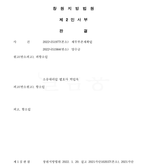 창원지방법원 2022나51977 채무부존재확인 본소, 2022나51984 양수금 반소