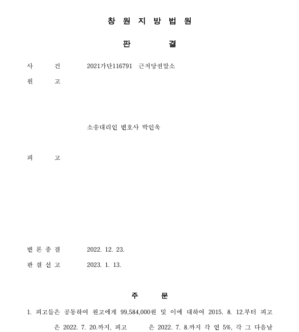 원고의 청구를 전부 인용하는 내용의 판결이 선고되었습니다.