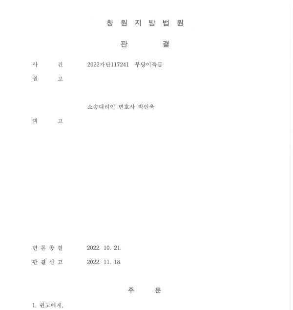 창원지방법원 2021가단117241 손해배상(기)부당이득금)