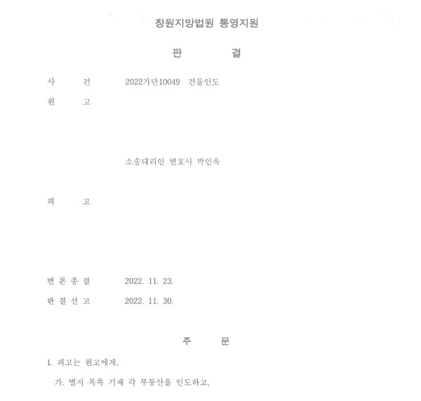 (창원지방법원 통영지원 2022가단10049 건물인도)
