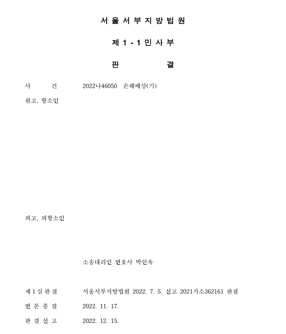 서울서부지방법원 2022나46050 피고(피항소인) 대리