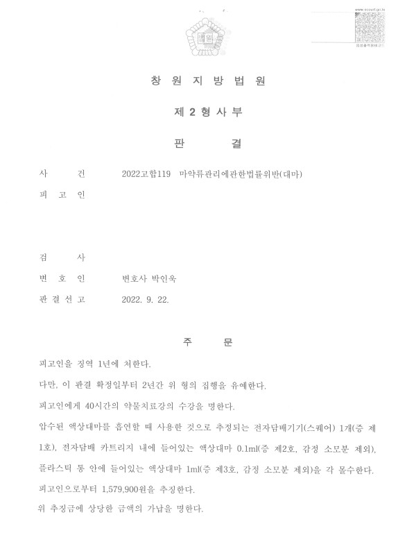 창원지법 2022고합119 마약류관리에관한법률위반(대마)