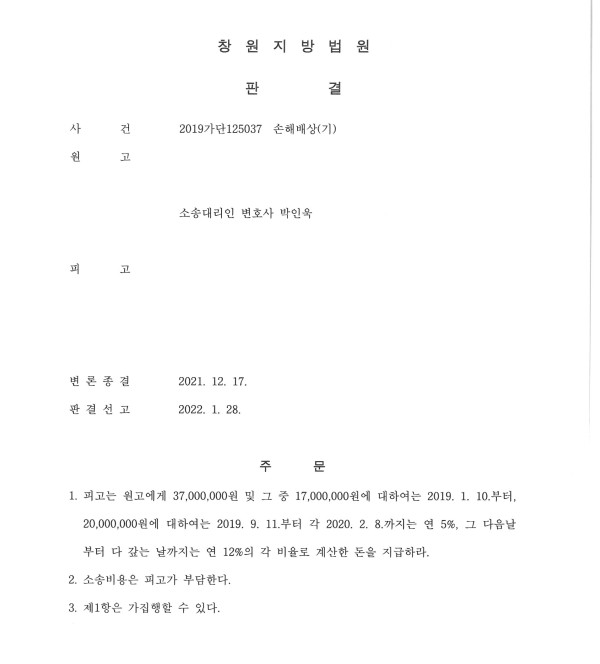 창원지방법원 2019가단125037 손해배상(기)