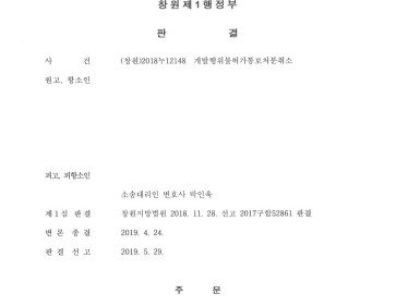 1.사안 (부산고등법원 창원제1행정부 2018누12148) 개발행위불허가통보처분취소소송 2.결과 주변 저수지와 이 사건 저수…