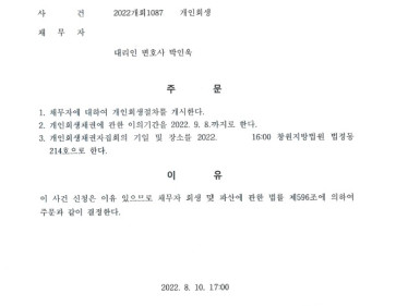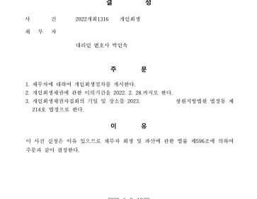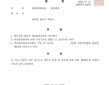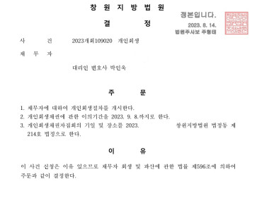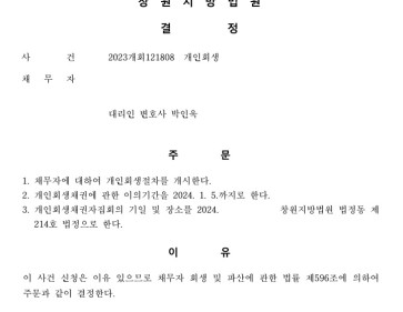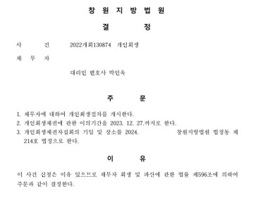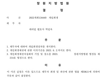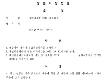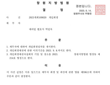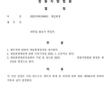 창원변호사 개인회생 개시결정 15% 성공사례!