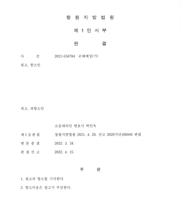 원고는 피고가 원고에게 반복적으로 문자메세지를 보내고 전화를 하여 괴롭혔다는 이유로 정통법위반 및 스토킹범죄의 처벌등에 관한 법률위반되는 범죄행위, 민사상 불법행위에 해당한다는 이유로 손해배상청구를 하였고 1심에서 패소하였다가 또 다시 항소를 제기하였습니다.
