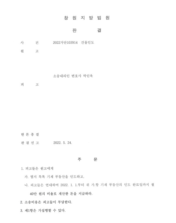 창원지법 2022가단103914 건물인도