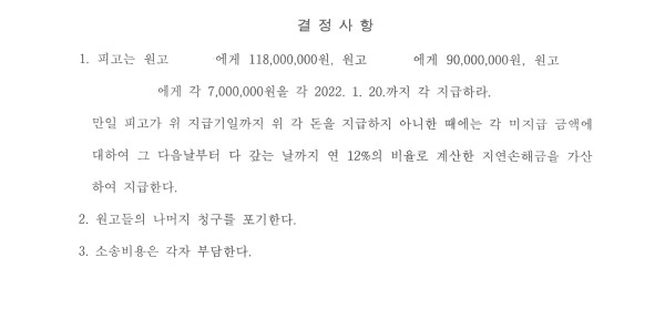그 결과 원고 측은 약 2억원을 배상금을 받게 되었습니다.