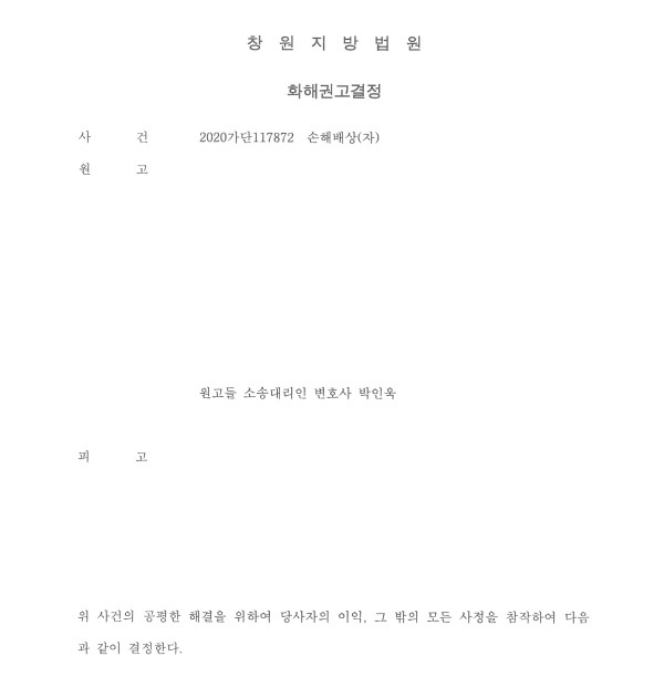 청구금액의 일부를 감액하는 내용의 화해권고결정을 받아들이기로 하였습니다.