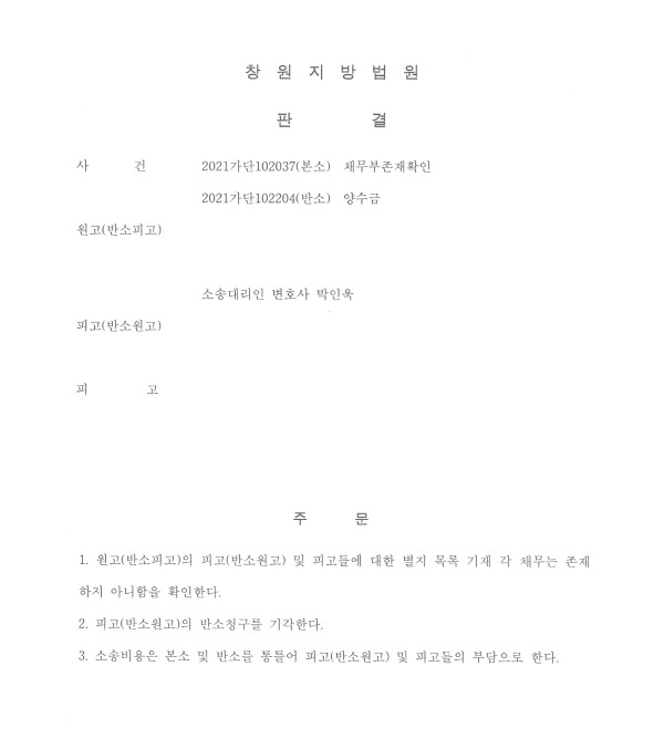 창원지방법원 2021가단102037(본소)채무부존재확인, 2021가단102204(반소)