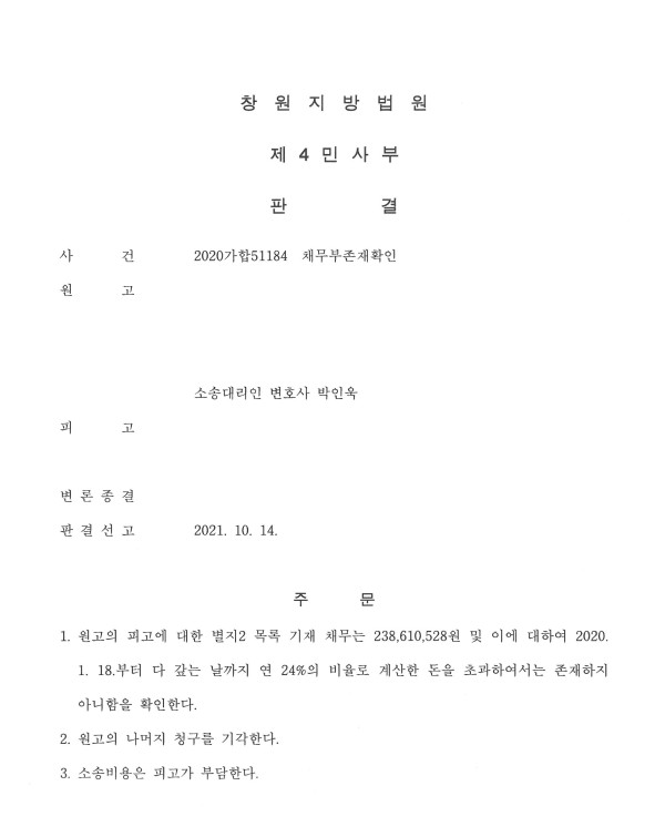 위 변제금에는 이자제한법상 최고이자율을 초과한 이율로 계산한 금원이 있어 이를 법상 최고한도로 맞추어서 이자를 계산하고 수백차례를 넘는 대여, 변제를 각 일자에 맞추어 변제충당하는 방식으로 잔존채무를 확정하고 이를 초과하여서는 채무가 존재하지 않는다는 이 사건 소를 제기하였습니다.