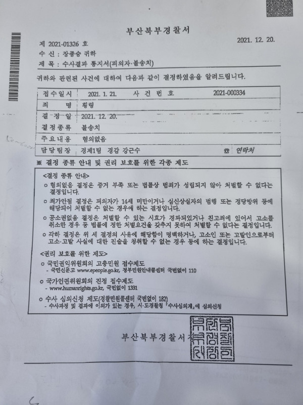 부산북부경찰서 2021-000334 횡령