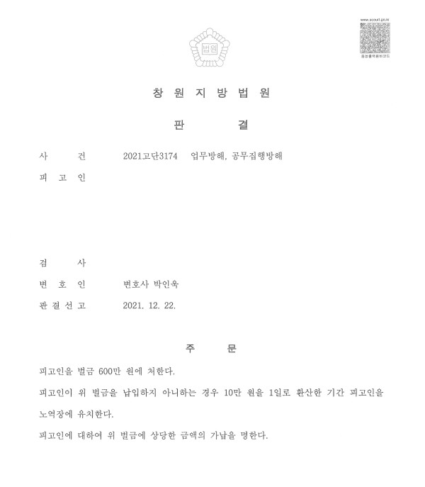 창원지방법원 2021고단3174