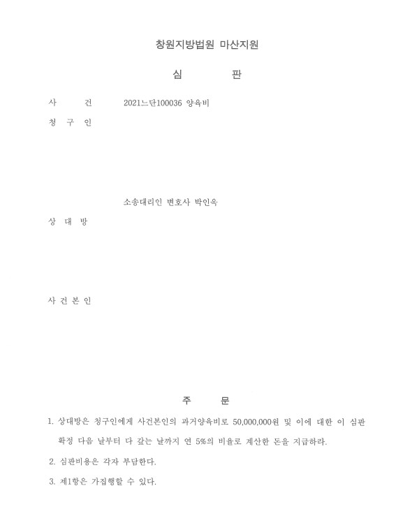 창원지방법원 마산지원 2021느단100036 양육비