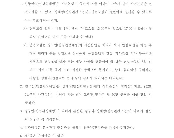 청구인은 상대방을 상대로 면접교섭청구 및 재산분할청구를 하였고, 이에 상대방은(박인욱변호사 대리인)과거양육비 및 장래양육비의 지급을 구하는 반심판청구를 하였습니다.