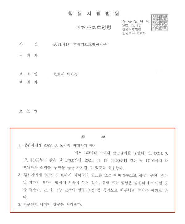 1.사안(창원지방법원 2021처17 피해자보호명령청구)