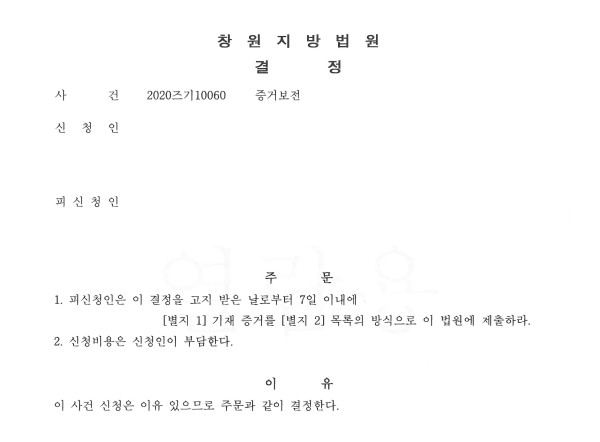 이 사건의 경우 역시 증거보전신청을 하여 증거보전결정을 얻어 관련증거를 확보할 수 있었습니다.