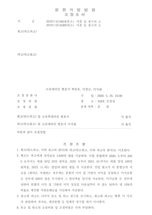 창원지방법원 2019드단14824 본소, 2019드단14589반소