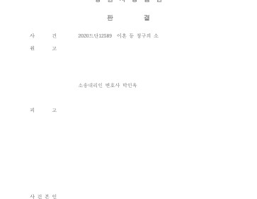 1. 사건 창원지방법원 2020드단12589 이혼 등 청구의 소(원고 대리하여 소제기) 원고는 본소로 이혼, 위자료 3,000만원, 사건본인에 대한 친…