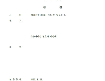 1. 사건 창원지방법원 마산지원 2021드단100094(본소)2021드단100100(반소) 이혼 등 청구의 소(피고 대리하여 반소제기) 원고는 본소로…