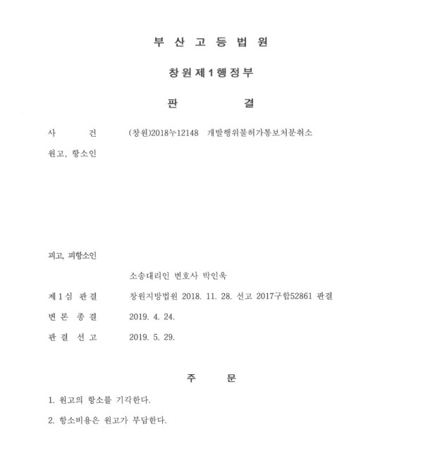 (부산고등법원 창원제1행정부 2018누12148)