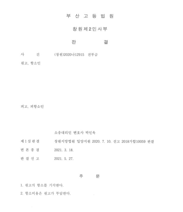 1.사안(부산고등법원 창원재판부 2020나12915 전부금)